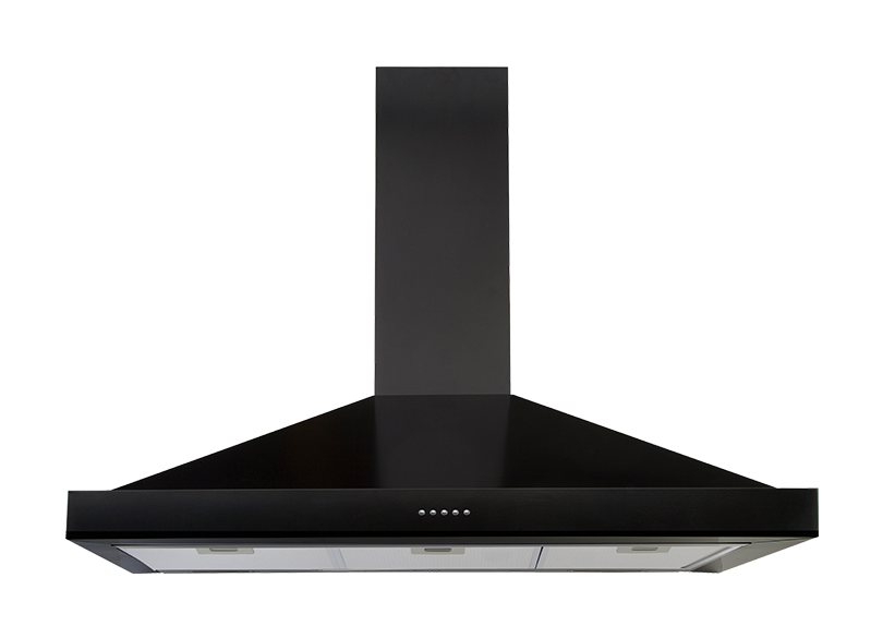 110cm Pyramid Canopy Rangehood with 800m3/h Extraction, Aluminium Filters, 3 x Fan Speeds and LED Lights. FInished in Matte Black Painted Steel