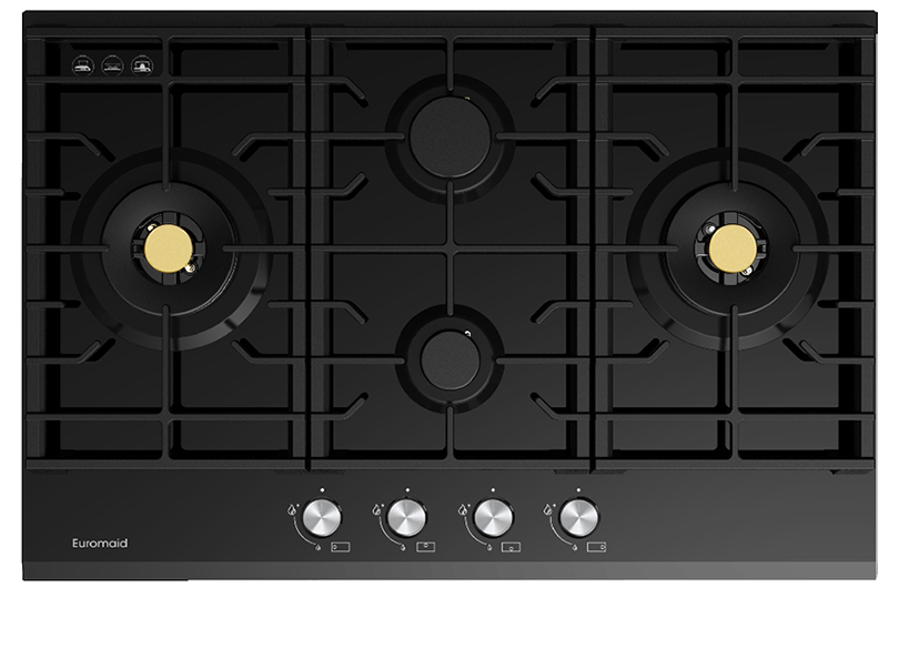 75cm Gas Cooktop With 4 Burners, Black Glass
