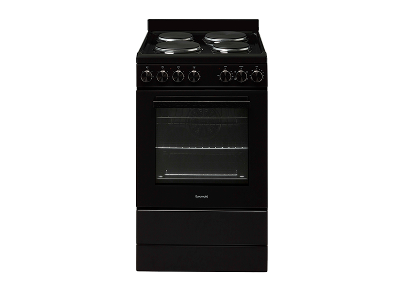 54cm Freestanding Electric Oven With Solid Cooktop, Black