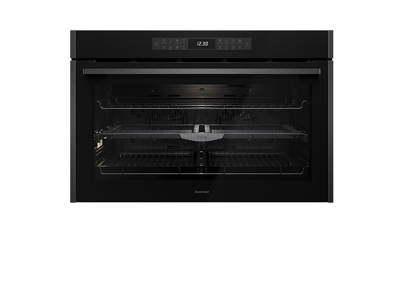 Perfect crispy, crunchy results at your fingertips. The 90cm 16 Function Euromaid Built-in Oven with Air Fry gives you unbeatable cooking results with healthy, delicious meals for the whole family. Combined with a market leading 148L oven capacity and 16 functions this oven is the ultimate home cook companion. Available only at selected Harvey Norman, Domayne and Joyce Mayne stores.