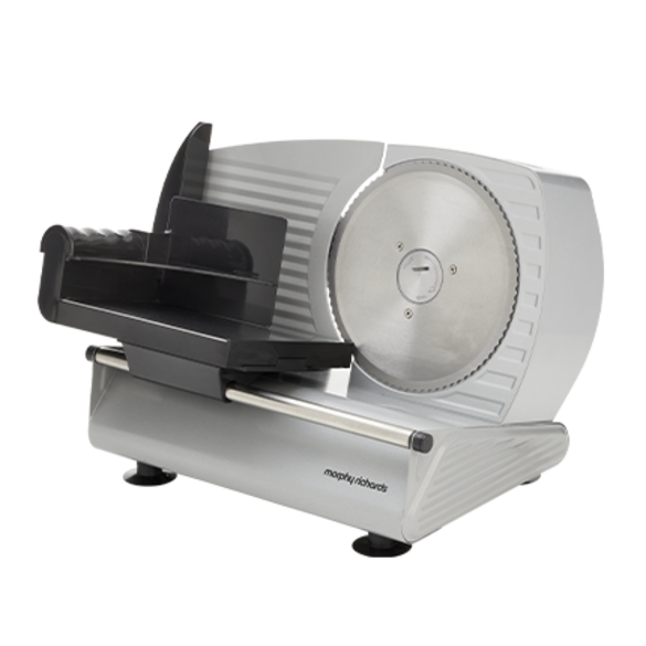 Effortlessly slice through meats, cheeses, fruits, vegetables, and bread with precision using the Morphy Richards Electric Food Slicer. Featuring a powerful 200W DC motor, durable 190mm stainless steel serrated blade, adjustable slicing dial and enhanced safety features like a blade guard and non-slip feet, all housed in a robust metal frame.