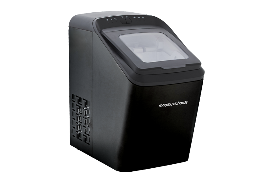 Crafted from hygienic stainless steel for durability and cleanliness, the Morphy Richards Ice Maker is capable of producing 9 bullet-shaped ice cubes every 7 to 11 minutes and up to 15kg of ice per day. Its user-friendly control panel allows you to effortlessly select your desired ice cube size and start the ice-making process with ease. With a built-in viewing window, monitoring the water level is simple, while intuitive indicators notify you of low water levels or when the ice bin reaches full capacity. Perfect for home use or entertaining, the Morphy Richards Ice Maker ensures a steady supply of ice for any occasion.Useful downloads
