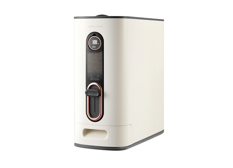 Want to keep your rice fresh and dry? The Morphy Richards Auto Rice Dispenser will keep your rice sealed and covered and at the press of the dial will dispense enough rice for 1-2 bowls. Made from food grade plastic this rice dispenser does not need AC power, only a 3V button battery to power the intelligent automatic timer to prompt a replenishment of rice every 21 days.Useful downloads