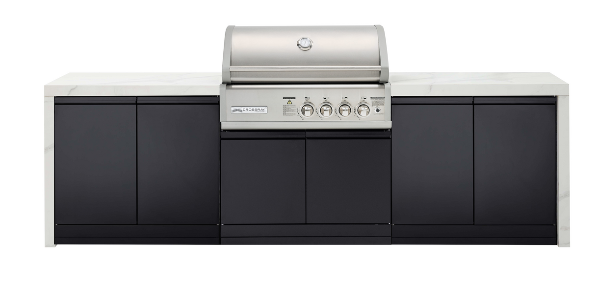 Transform your outdoor cooking and entertaining experience with the NEW Premium 4B Outdoor Kitchen, a perfect blend of style, functionality, and durability. Featuring exquisite white or black sintered stone benchtops with elegant waterfalls, this kitchen is designed to complement the award-winning CROSSRAY TCS4FL in-built infrared gas BBQ. Whether you?re hosting a summer barbecue or enjoying a cozy evening with friends, this outdoor kitchen enhances every moment spent in your outdoor space.