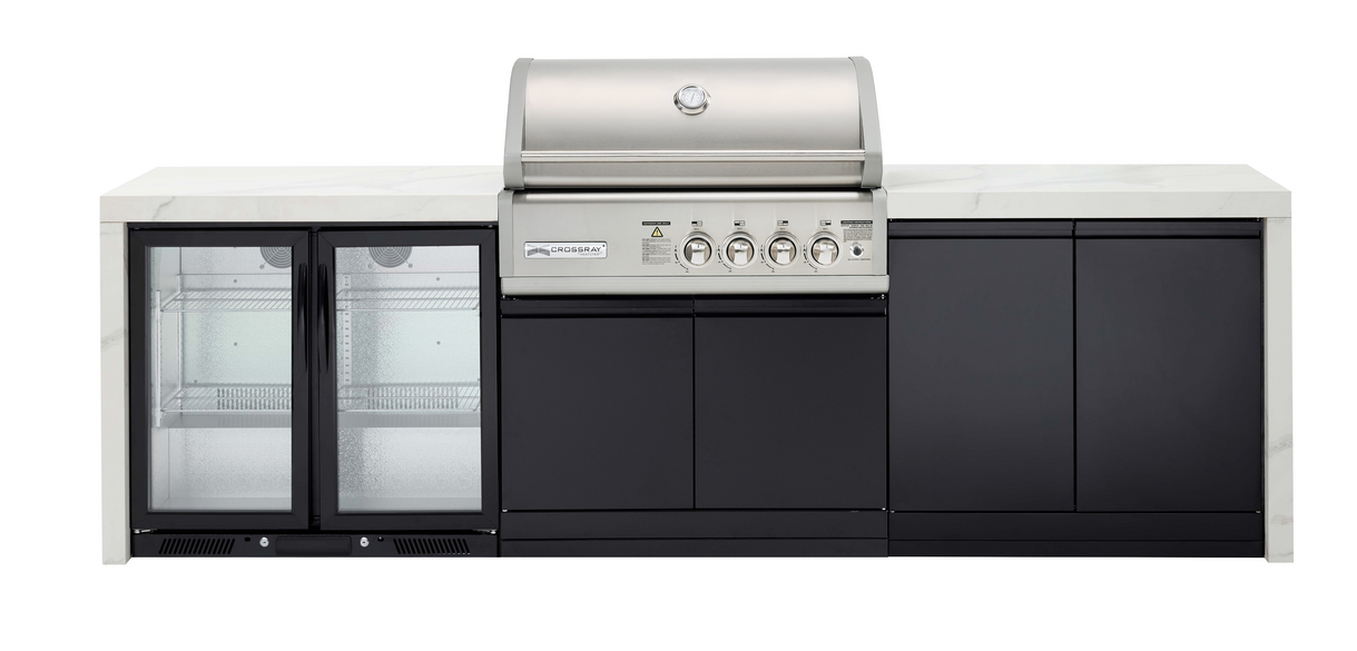 TC4KP-15Transform your outdoor cooking and entertaining experience with the NEW Premium 4B Outdoor Kitchen, a perfect blend of style, functionality, and durability. Featuring exquisite white or black sintered stone benchtops with elegant waterfalls, this kitchen is designed to complement the award-winning CROSSRAY TCS4FL in-built infrared gas BBQ. Whether you?re hosting a summer barbecue or enjoying a cozy evening with friends, this outdoor kitchen enhances every moment spent in your outdoor space.