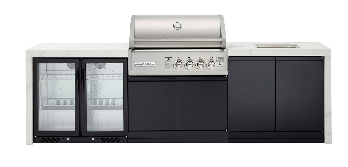 TC4KP-16Transform your outdoor cooking and entertaining experience with the NEW Premium 4B Outdoor Kitchen, a perfect blend of style, functionality, and durability. Featuring exquisite white or black sintered stone benchtops with elegant waterfalls, this kitchen is designed to complement the award-winning CROSSRAY TCS4FL in-built infrared gas BBQ. Whether you?re hosting a summer barbecue or enjoying a cozy evening with friends, this outdoor kitchen enhances every moment spent in your outdoor space.